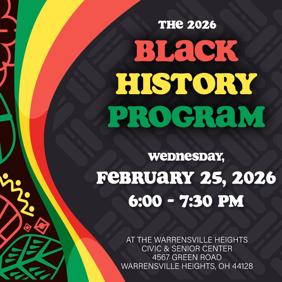 The 2026 Annual Black History Program will be held at the Civic & Senior Center on February 25th, beginning at 6 PM. Enjoy an evening filled with inspiration, music, dance, and more. Everyone is welcome to attend!